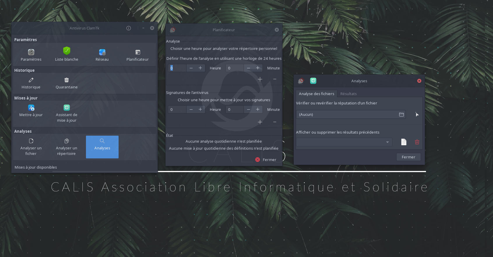 Interface Graphique pour ClamAV l'antivirus libre sous Linux. Détecte majoritairement les menaces Windows et parfois des faux positifs il faut donc analyser correctement les résultats. Il est toutefois intéréssant sous Linux pour Wine, vos serveurs où pour sa détection des rootkits.