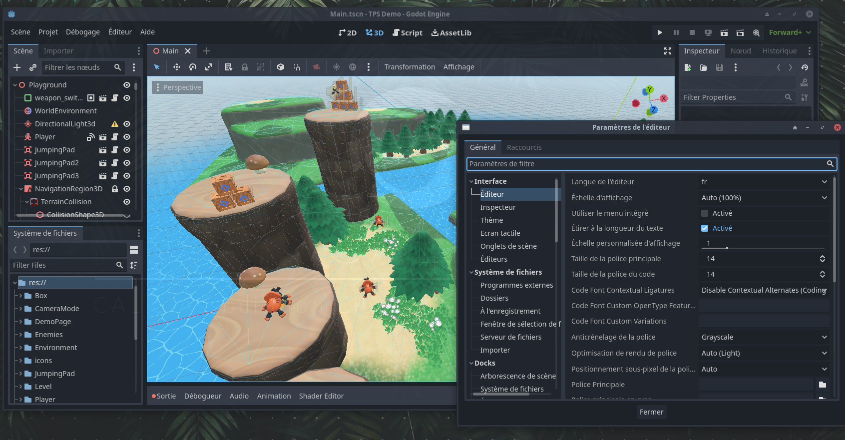 Un moteur de jeu libre accessible au public néophyte tout en proposant d'excellentes performances. Godot gère les scène 3D et 2D et permet de scripter les interactions avec les objets grâce au langage GDscript qui se révèle être une version de Python adapté à Godot. Il existe également une version prenant en charge le langage C# à la manière de son homologue propriétaire Unity. Le projet bénéficie d'une communauté très active.