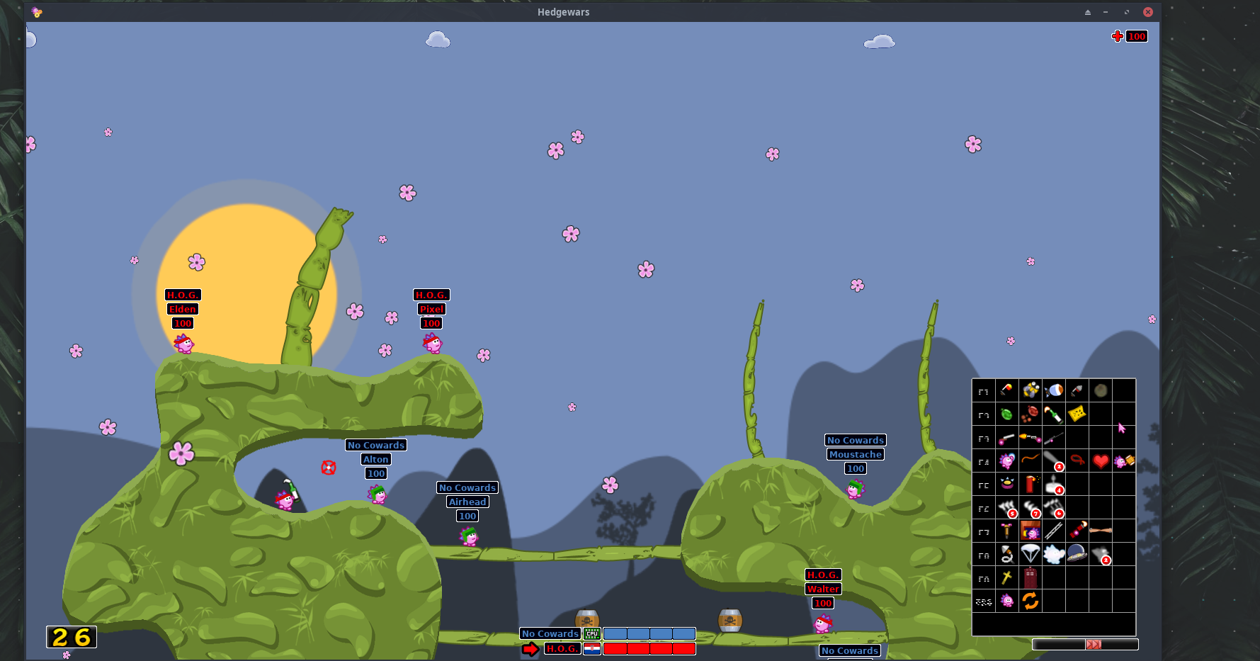 Bataille de Hérisson type Worms en ligne ou en local. Le jeu permet de créer des cartes depuis un simple SVG, très intéréssant et facile d'accès pour les contributeurs.