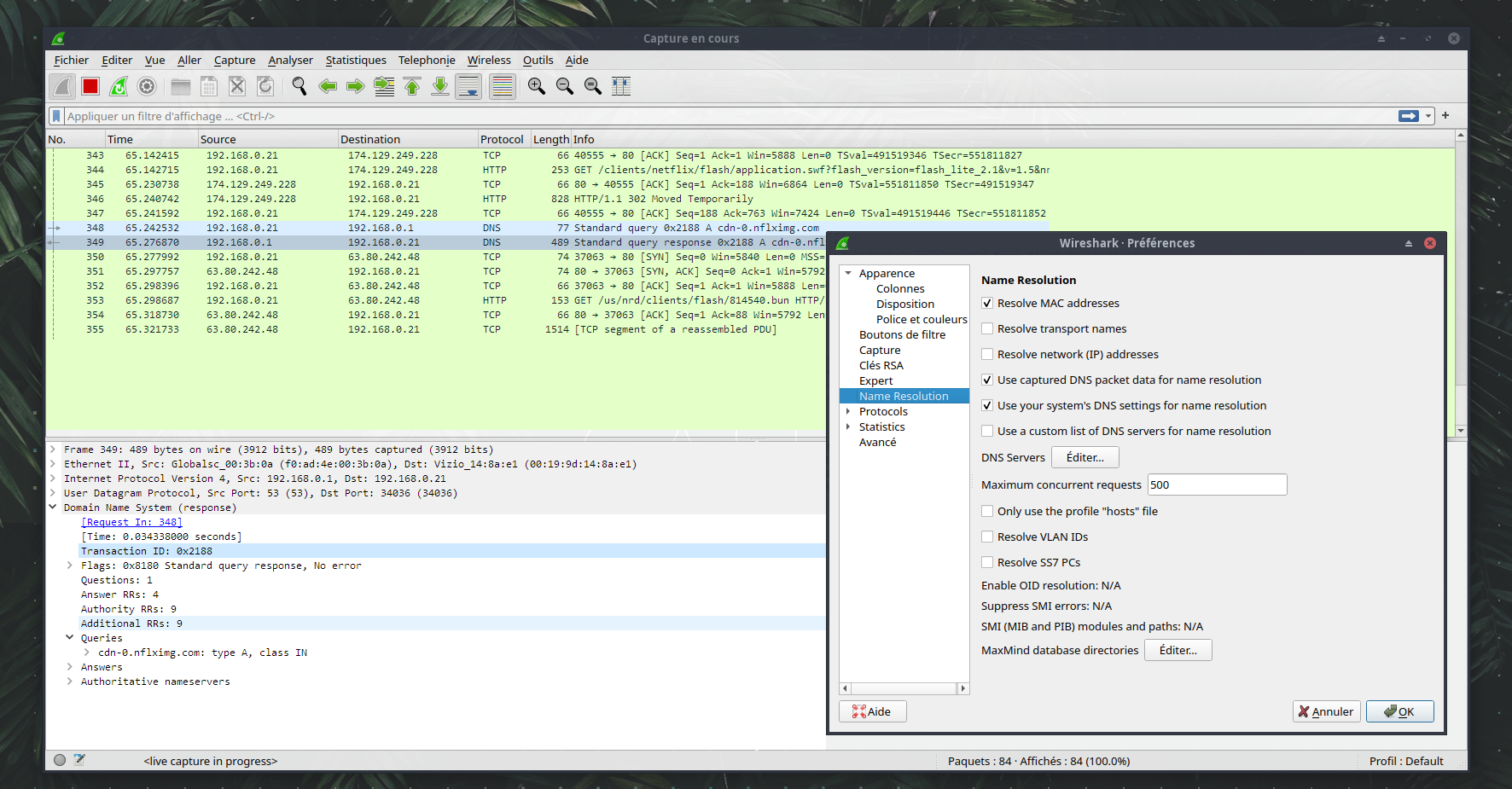 Analyse du réseau. La version FreeBSD est disponible seulement via terminal.